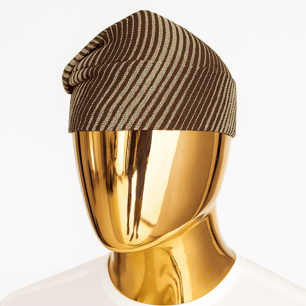 Brown Diagonal Striped Aso-Oke Gele Cap