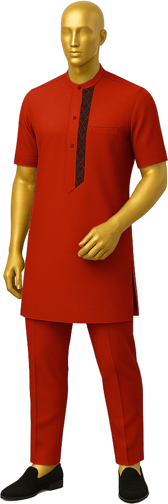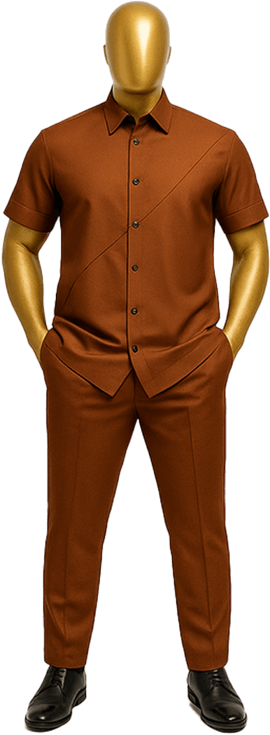 Embrace effortless sophistication with this rich terracotta short-sleeved button-down shirt paired with matching tailored trousers. The burnt orange hue radiates warmth and African earth energy, while the clean lines and contemporary tailoring offer versatile styling for both formal and semi-formal occasions. This two-piece set represents modern African masculinity—confident, refined, and culturally grounded without excessive ornamentation. Ideal for daytime cultural events, upscale casual gatherings, creative professional settings, and social celebrations where polished presentation meets relaxed elegance. The terracotta tone symbolizes connection to African soil, vitality, and creative energy. This ensemble transitions beautifully from afternoon weddings to evening receptions. Pair with brown or black leather accessories depending on the formality of your occasion.