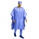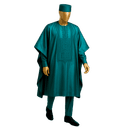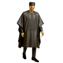 Embrace modern elegance with this sophisticated silver sage Agbada featuring white geometric embroidery. This refined four-piece set combines contemporary color with intricate detailing, perfect for the gentleman who appreciates fashion-forward neutrals and symbolic patterns. This distinguished outfit showcases a short-sleeved Agbada in lustrous silver sage fabric, adorned with beautiful white embroidered geometric designs featuring concentric circles and lattice patterns arranged vertically on the chest. The contrast embroidery adds refined sophistication. The traditional wide-sleeve design creates elegant presence with modern edge. Complete with matching silver sage trousers, inner long-sleeved top, and a coordinating silver Kufi cap, this complete ensemble delivers contemporary sophistication for fashion-forward weddings, modern cultural events, upscale celebrations, and occasions requiring distinctive, refined style. The silver sage conveys modernity, calm, and sophisticated taste. Custom-tailored to your exact measurements.