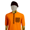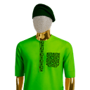 Stand out in this vibrant golden yellow short-sleeved dashiki featuring bold black geometric embroidery on the chest pocket and placket. The bright yellow fabric makes a confident statement while the contrasting black embroidery adds graphic appeal. Complete with matching black cap for a coordinated look. This piece works beautifully for daytime events and celebrations where bold color is welcome. The fitted silhouette offers modern appeal while the embroidered details maintain traditional aesthetics. Pair with black or khaki trousers for versatile styling options.