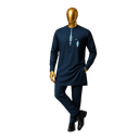 Experience sleek minimalism with this sophisticated all-black Kaftan featuring delicate silver embroidered accents. This refined two-piece set combines monochromatic elegance with subtle detailing, perfect for the modern gentleman who appreciates understated luxury and clean aesthetics. This polished outfit showcases a long-sleeved Kaftan in deep black fabric with minimalist silver embroidered placket detail and small geometric embellishments on the chest pocket that add just enough visual interest. The mandarin collar maintains classic proportions. Paired with matching black straight-leg trousers, this two-piece ensemble delivers versatile sophistication for upscale evening events, contemporary cultural gatherings, formal business occasions, and everyday refined traditional wear. The all-black aesthetic conveys timeless elegance and modern professionalism. Custom-tailored to your exact measurements for impeccable fit.