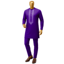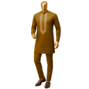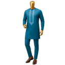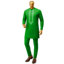 Embrace refined elegance with this sophisticated grey Senator suit, a contemporary take on Nigerian formal wear. This tailored two-piece features intricate white embroidered detailing along the chest panel, creating a striking contrast against the cool grey fabric. The mandarin collar and fitted silhouette offer a modern edge while honoring traditional craftsmanship. Perfect for weddings, corporate events, and cultural celebrations where you want to make a distinguished impression.
