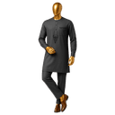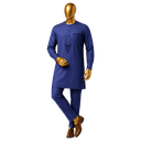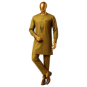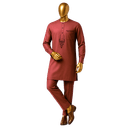 This rich chocolate brown long-sleeved Senator suit features subtle tonal embroidery at the chest pocket and mandarin collar with button placket. The fitted silhouette offers modern tailoring while the earth-toned embroidery maintains traditional aesthetics. Complete with matching brown trousers for a coordinated two-piece look. The chocolate brown color works beautifully across seasons and occasions. The long sleeves and fitted cut create streamlined presentation ideal for professionals. Style with brown or black leather accessories for polished finishing touches.