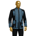 Command the room with this stunning black fitted jacket featuring elaborate golden embroidery that flows like liquid luxury across premium fabric. The intricate detailing showcases an array of traditional Nigerian motifs including geometric patterns, floral elements, and ornamental borders that frame the mandarin collar, front placket, sleeves, and hem. Each stitch tells a story of heritage and excellence, with the golden threads creating a magnificent contrast against the deep black canvas. This is the work of master craftsmen who understand that true luxury lies in the details—from the decorative buttons to the precisely embroidered cuff bands featuring pyramid and tribal patterns. Perfect for the distinguished gentleman who refuses to blend into the background, this jacket pairs beautifully with tailored black trousers for a complete sophisticated look. Whether you're attending a high-profile gala, cultural celebration, milestone birthday, or prestigious business event, this piece ensures you'll be remembered. The structured fit offers modern tailoring while the traditional embellishments honor ancestral artistry. This is investment dressing at its finest—a statement piece that transcends trends and becomes a cherished part of your wardrobe legacy.