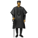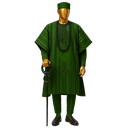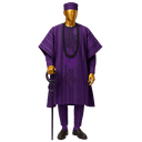 Command distinguished presence with this elegant mahogany Agbada ensemble featuring refined vertical striping and geometric embroidery. This sophisticated four-piece set combines rich burgundy tones with subtle texture and traditional craftsmanship, perfect for the gentleman who appreciates depth, warmth, and cultural authenticity. This impressive outfit showcases a short-sleeved Agbada in deep mahogany burgundy fabric with elegant vertical pinstripes woven throughout, creating sophisticated texture and visual movement. The chest features beautiful tonal embroidery with geometric patterns including diamond shapes and traditional symbols that add cultural authenticity. The traditional wide-sleeve design creates commanding presence and regal flow. The rich mahogany tone evokes stability, nobility, and maturity. Complete with matching mahogany trousers, inner top, and a coordinating burgundy Kufi cap, this complete ensemble delivers powerful elegance for traditional weddings, chieftaincy installations, formal ceremonies, milestone celebrations, and prestigious cultural gatherings. Traditional dark beaded necklace and walking stick complete the authoritative, distinguished aesthetic. Custom-tailored to your exact measurements for impeccable fit.