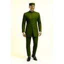 Command attention in this deep forest green Senator-style ensemble complete with matching cap. The jacket features delicate embroidered accents on the shoulders and an asymmetric button closure that adds contemporary flair to traditional design. This sophisticated set embodies political elegance and cultural pride, making it perfect for formal functions, community leadership events, and milestone celebrations where presence matters.