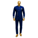 Command boardrooms and ceremonies alike in this sophisticated navy blue Senator suit featuring elegant golden embroidered cuff details and matching pocket square. The fitted mandarin collar jacket with asymmetric button closure offers contemporary tailoring with cultural authenticity, while subtle golden embroidery at the cuffs adds refined luxury. Paired with perfectly tailored navy trousers, this two-piece ensemble bridges traditional Nigerian formal wear and modern power dressing. Perfect for the cosmopolitan professional attending corporate events, upscale weddings, political functions, and cultural celebrations where polished sophistication matters. The deep navy represents wisdom and stability while the golden accents symbolize excellence and achievement. This versatile set transitions seamlessly from daytime business to evening celebrations. Style with black or brown leather footwear depending on the occasion's formality.