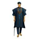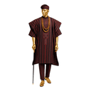 Honor Lagos cultural heritage with this magnificent navy and burgundy striped Agbada inspired by the iconic Eyo masquerade tradition. The flowing short-sleeved robe features vertical multicolored stripes with burgundy diamond embroidery down the chest panel, creating dynamic visual movement. Complete with matching striped trousers, cap, coral beads, and ceremonial walking staff, this ensemble embodies the pageantry and spiritual depth of Yoruba ceremonial dress. This three-piece set with accessories represents more than fashion—it's cultural storytelling through fabric. Perfect for traditional weddings, chieftaincy ceremonies, and cultural festivals where celebrating Lagos Island heritage matters. The bold striping pattern and regal color combination ensure commanding presence, while the complete accessories elevate this to ceremonial excellence. Style with golden leather footwear to complement the coral beads.