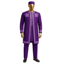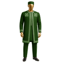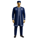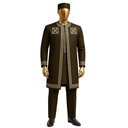 Step into distinguished elegance with this sophisticated charcoal Senator suit featuring striking white geometric embroidery. The long-sleeved jacket showcases intricate silver-white patterns along the front, shoulders, and cuffs—traditional Igbo symbols representing wisdom, protection, and prosperity. The mandarin collar and structured silhouette offer modern refinement while honoring ancestral aesthetics. Paired with matching charcoal trousers and embroidered cap, this three-piece ensemble embodies the dignity and authority of Igbo titled men. Ideal for Ichie title holders, distinguished professionals, and culturally conscious gentlemen attending Igbo cultural ceremonies, title-taking events, and prestigious gatherings. The charcoal and silver palette creates timeless sophistication while the geometric patterns connect directly to Igbo cosmology and philosophical traditions. This ensemble bridges heritage and contemporary style with masterful craftsmanship and attention to cultural detail.