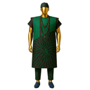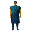 Celebrate artistic innovation with this striking teal and purple dashiki featuring mesmerizing spiral patterns. The short-sleeved tunic showcases bold magenta circular spirals against rich teal fabric, creating hypnotic visual movement that honors African geometric artistry. The contrasting color-blocked shoulders add contemporary edge, while burgundy beaded necklaces and matching embroidered cap complete this three-piece statement ensemble. This is traditional wear for the fearless style innovator. Ideal for cultural celebrations, creative industry events, and social gatherings where bold self-expression through African aesthetics is celebrated. The spiral patterns represent life's journey, cosmic energy, and the cyclical nature of existence—deeply rooted philosophical concepts. The teal and purple combination creates regal sophistication with contemporary flair. This ensemble commands attention while honoring indigenous design principles passed down through generations.