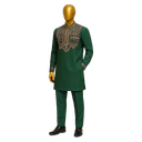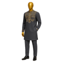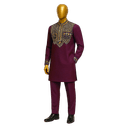 Step into regal sophistication with this luxurious deep purple Senator suit featuring elaborate golden embroidery across the chest and cuffs. The long-sleeved tunic showcases intricate patterns combining geometric precision with organic flowing elements, creating visual richness that speaks to masterful craftsmanship. Paired with matching purple trousers, this two-piece ensemble channels Northern Nigerian elegance and royal bearing. Ideal for high-ranking officials, accomplished professionals, and distinguished gentlemen attending state functions, political gatherings, and upscale cultural celebrations. The purple hue represents wisdom, nobility, and spiritual depth, while the golden embroidery symbolizes achievement and excellence. This ensemble bridges traditional Northern aesthetics with contemporary tailoring for timeless sophisticated appeal.
