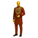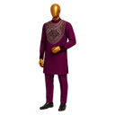 Celebrate Yoruba artistic excellence with this stunning burgundy long-sleeved tunic featuring spectacular golden and white beaded chest panel. The intricate beadwork creates dimensional texture showcasing traditional Yoruba patterns and symbols. The rich wine-burgundy fabric provides the perfect canvas for the elaborate beading, while matching trousers complete this refined two-piece ensemble. This is wearable art that honors indigenous craftsmanship traditions. Perfect for title holders, cultural ambassadors, and discerning gentlemen attending owambe celebrations, traditional weddings, and prestigious cultural gatherings. The beadwork represents hours of skilled artisan labor, making each piece unique. The burgundy symbolizes royalty and spiritual depth, while the golden beading represents prosperity and divine blessing. This ensemble is investment dressing at its finest.