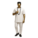 Crisp cream-colored short-sleeved shirt with clean button placket and chest pocket. No embroidery, no patterns—just sharp tailoring in soft cream fabric. The short sleeves keep things casual while the structured cut maintains polish. Pair with matching cream trousers, add red cap and coral beads for instant traditional styling. This is your blank canvas piece. Works for intimate family gatherings or dress it up for larger celebrations. The neutral cream goes with everything in your closet. Easy care, easy styling, always looks intentional.