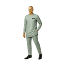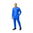 Sleek contemporary sky blue senator suit in premium solid fabric with refined minimalist design. Features mandarin collar, subtle chest pocket accent in contrasting navy detail, and a modern fitted silhouette that bridges traditional and contemporary style. The long-sleeved top pairs perfectly with matching straight-leg trousers for a complete, polished look. This outfit is effortlessly sophisticated without being overwhelming. The calming azure blue offers a fresh take on Nigerian menswear while maintaining cultural authenticity. Perfect for the modern man who appreciates tradition with a contemporary edge. Ideal for church services, cultural events, business meetings, upscale gatherings, or any occasion where you want to look sharp and culturally connected.