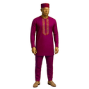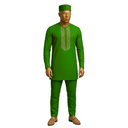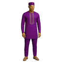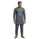 Stunning royal blue senator suit in rich solid fabric with exquisite geometric embroidery cascading down the chest. Features round neckline, intricate traditional threadwork in contrasting tone, and long sleeves for a regal appearance. Complete with matching royal blue cap and coordinating trousers. The deep blue commands attention while the detailed embroidery adds cultural authenticity and craftsmanship. This is statement dressing at its finest—bold color meets traditional artistry. Perfect for weddings, chieftaincy ceremonies, milestone celebrations, Aso Ebi events, or any grand occasion where you want to honor tradition while standing out.