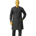 Sophisticated charcoal navy senator suit in luxurious textured fabric with subtle diamond crosshatch pattern throughout. Features mandarin collar with refined button placket detail, long sleeves, and a sleek modern silhouette. The all-over texture adds depth and dimension to the solid tone. Includes matching trousers. This is understated luxury for the discerning gentleman. The deep charcoal color exudes authority while the textured fabric elevates it beyond ordinary. No embellishments needed—the quality speaks for itself. Perfect for corporate events, executive meetings, evening receptions, upscale dinners, or anytime you want to project sophistication and quiet confidence.