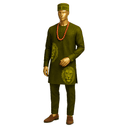 Luxurious burgundy wine-colored senator set featuring magnificent golden lion embroidery across chest and lower hem. Long-sleeved buba in rich solid fabric with intricate threadwork detail. Complete with coordinating red cap with gold trim and traditional coral beads. Includes matching wine sokoto. The deep crimson speaks of royalty while the golden lion embroidery symbolizes strength and heritage. This color is bold yet refined—commanding respect while maintaining elegance. The detailed craftsmanship elevates it to heirloom quality. Perfect for traditional weddings, chieftaincy events, cultural coronations, milestone celebrations, or occasions demanding regal presence.