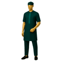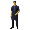 Refined all-black senator ensemble in premium solid fabric with subtle tonal embroidery on the chest panel. Short-sleeved design with mandarin collar and impeccable tailoring. Includes matching black cap and coordinating sokoto for complete elegance. Pure sophistication in its most powerful form. The monochromatic black-on-black embroidery creates texture without distraction—letting your presence speak louder than patterns. This is timeless, authoritative style for the man of substance. Perfect for executive events, evening ceremonies, upscale dinners, formal gatherings, or moments when understated power is the statement.