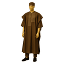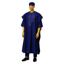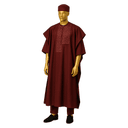 Grand flowing black agbada with dramatic wide sleeves and geometric embroidered chest panel. Crafted in premium solid fabric with traditional threadwork in matching tones. The voluminous silhouette creates commanding presence. Complete with matching black cap and coordinating inner wear. This is power dressing in its most majestic form. The flowing agbada represents authority, wisdom, and cultural pride—reserved for men of distinction. The all-black palette with subtle embroidery is both timeless and imposing. Perfect for chieftaincy installations, high-profile weddings, cultural leadership events, prestigious ceremonies, or any occasion where you represent excellence and tradition.