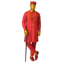 Rich burnt orange long-sleeved senator ensemble in luxurious solid fabric. Features clean lines, mandarin collar, and impeccable tailoring. Complete with burgundy cap, traditional multi-strand coral beads, golden pendant, and ceremonial walking stick for full cultural authenticity. The warm amber-orange color radiates energy and cultural pride. This color is bold yet refined, standing out while maintaining sophistication. The complete traditional accessories elevate the ensemble to ceremonial status. Ideal for traditional weddings, cultural leadership events, ceremonial gatherings, milestone celebrations, or occasions demanding full traditional regalia with commanding presence.
