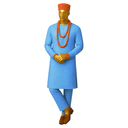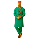 Serene aqua blue long-sleeved senator with subtle center embroidery detail. Premium solid turquoise fabric with refined tailoring. Complete with vibrant orange cap and multi-strand coral beads creating striking color harmony. Includes matching aqua sokoto. The aqua-orange combination is unexpected and visually stunning—cool meets warm in perfect balance. The contrasting accessories add personality and cultural flair to the calming base color. This outfit radiates positive energy. Perfect for joyful celebrations, engagement ceremonies, anniversary events, cultural festivals, naming ceremonies, or occasions celebrating new beginnings and happiness.