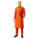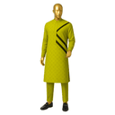 Contemporary sage green long-sleeved senator featuring bold diagonal black stripes across the chest. Premium solid fabric with graphic modern design element. The striking contrast creates architectural visual interest. Includes matching green sokoto. This is tradition reimagined through modern design lens. The sage color is calming yet confident, while the bold black stripes add edgy contemporary flair. Perfect for the progressive traditionalist. Ideal for modern weddings, contemporary cultural events, fashion-forward celebrations, creative industry functions, or occasions where you want to honor heritage while showcasing modern African aesthetic.