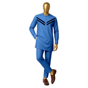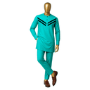 Clean cream-colored long-sleeved tunic with bold black chevron stripes across the chest creating graphic visual impact. The modern geometric design breaks from traditional embroidery patterns while maintaining classic Senator silhouette. Mandarin collar with button placket adds refined detail. Pair with matching cream trousers for a sharp two-piece look that stands out without heavy embellishment.Works beautifully for younger professionals wanting something fresh and contemporary. The black and cream palette is incredibly versatile—dress it up with traditional caps and beads, or keep it minimal with just the tunic and trousers. Quality tailoring ensures polished fit that photographs well.