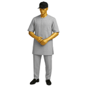 Contemporary dusty rose short-sleeved senator in premium solid fabric with ultra-clean design. Features subtle center seam detail and functional chest pocket. Paired with modern black cap for urban-traditional fusion. The soft pink tone is unexpected yet sophisticated. Includes matching sokoto. This color challenges traditional masculinity norms while maintaining cultural respect—perfect for the confident modern man. The minimalist aesthetic lets the bold color choice speak. Ideal for contemporary weddings, fashion-forward cultural events, modern traditional ceremonies, creative gatherings, or the progressive gentleman making new traditions.