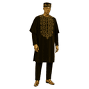 Majestic deep burgundy short-sleeved agbada with dramatic wide sleeves and extensive golden embroidery covering the chest. Premium luxurious fabric with flowing silhouette creating commanding presence. Complete with matching embroidered fila. The elaborate gold threadwork showcases exceptional craftsmanship. This is maximum traditional impact—the flowing agbada represents authority while the lavish embroidery demonstrates cultural investment. Every detail communicates prestige and heritage pride. Perfect for grand traditional weddings, chieftaincy installations, cultural coronations, high-society events, milestone celebrations, or occasions where you represent the pinnacle of tradition.