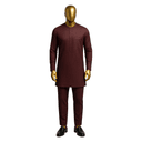 Sleek forest green long-sleeved senator set in premium solid fabric. Clean, minimalist design featuring subtle center seam detailing and chest pocket accent. The fitted long-sleeved top offers contemporary styling with traditional roots. Round neckline and tailored silhouette create modern, polished appearance. Paired with matching forest green trousers for complete tonal coordination. Made from quality solid fabric with smooth, luxurious finish. The rich jewel-tone green exudes confidence and sophistication. Simple, understated design allows the premium fabric and bold color to shine. Ideal for business events, cultural gatherings, religious services, upscale occasions, or everyday distinguished wear.