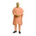 Pristine white complete agbada ensemble featuring delicate tonal embroidered panel. The flowing outer robe drapes gracefully with wide sleeves in premium white fabric. Subtle white-on-white embroidery adorns the chest with intricate patterns creating elegant texture. Fitted inner kaftan with long sleeves layers beneath for refined styling. Coordinating white trousers complete the immaculate monochromatic look. Crafted from premium quality solid fabric with expert tonal embroidery. The pure white palette symbolizes purity, peace, and reverence. Understated embellishment maintains focus on the luxurious fabric and impeccable tailoring. Perfect for religious ceremonies, spiritual events, milestone celebrations, formal occasions, or symbolic meaningful events.
