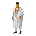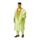Elegant cream flowing agbada with stunning golden embroidered cascading design. The graceful outer robe features intricate swirling golden threadwork flowing diagonally across the body and down the sleeves. Wide kimono-style sleeves create dramatic movement and luxurious drape. Fitted inner long-sleeved kaftan in coordinating cream with beautiful golden embellishment at cuffs. Matching cream trousers complete the refined ensemble. Styled with multiple strands of traditional coral beads and classic cap. Made from premium solid fabric with exceptional embroidery craftsmanship. The warm cream base with metallic golden accents creates timeless sophistication. Perfect for traditional weddings, milestone celebrations, cultural festivals, or distinguished gatherings.