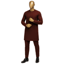Classic solid black long-sleeved senator set in premium fabric with clean modern lines. The fitted top features subtle center seam detailing and refined tailoring for contemporary sophistication. Round neckline and sleek silhouette create understated elegance. Paired with coordinating black trousers for complete monochromatic styling. Made from quality solid fabric with smooth finish and comfortable fit. The timeless black palette offers versatile sophistication suitable for multiple occasions. Minimal embellishment allows the premium fabric quality and impeccable construction to take center focus. Perfect for business meetings, formal gatherings, contemporary events, professional styling, or everyday distinguished wear.