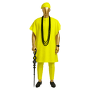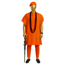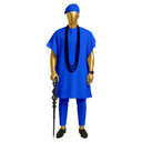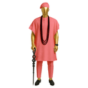 Pristine cream short-sleeved kaftan in premium solid fabric with clean elegant lines. Simple refined silhouette creates timeless sophistication and ceremonial dignity. Styled with coordinating cream trousers, cream traditional cap, layered black beaded necklaces, and ceremonial staff for complete elder's presentation. Made from quality solid cream fabric with smooth luxurious finish. The pure cream palette represents wisdom, peace, and spiritual significance. Minimal embellishment keeps focus on the ceremonial accessories and dignified presence. Perfect for traditional ceremonies, spiritual events, cultural leadership occasions, elder's gatherings, religious services, or symbolic meaningful presentations.