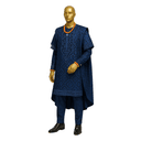 Embrace royal magnificence with this luxurious burgundy brocade Agbada ensemble featuring intricate damask patterns and stunning gold embroidery. This opulent three-piece set represents the height of Nigerian ceremonial attire, designed for the gentleman who appreciates Old World elegance and premium craftsmanship. The outfit showcases a dramatic flowing Agbada in rich burgundy brocade fabric with an all-over raised damask pattern that creates depth and texture. The centerpiece features elaborate gold embroidery running vertically down the chest in ornate traditional motifs. The sleeves and hem are trimmed with coordinating gold decorative bands that frame the silhouette beautifully. The wide-sleeve design creates impressive presence and flow. Complete with matching burgundy trousers, this ensemble exudes luxury and cultural prestige.