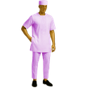 Embrace refined simplicity with this elegant ivory Senator ensemble that epitomizes timeless sophistication. This pristine off-white outfit offers versatile styling options and represents the perfect canvas for the modern gentleman who appreciates understated luxury and clean aesthetics. The outfit features a short-sleeved Senator top in soft ivory fabric, adorned with subtle tonal embroidery down the center front panel that adds texture without overwhelming the minimalist design. The contemporary round neckline and relaxed fit provide comfortable elegance for all-day wear. Paired with matching straight-leg trousers and completed with a coordinating ivory Kufi cap, this three-piece set delivers effortless polish.