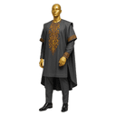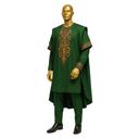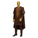 Command respect in this luxurious deep purple Agbada featuring spectacular golden embroidery cascading down the chest and adorning the sleeves. The short-sleeved outer robe flows elegantly over a long-sleeved inner tunic, both showcasing intricate floral and geometric patterns in shimmering golden thread. Paired with matching purple trousers, this three-piece ensemble channels royal authority and spiritual wisdom through its rich color and elaborate embellishment. Perfect for high-ranking title holders, accomplished professionals, and distinguished gentlemen attending chieftaincy ceremonies, traditional weddings, and milestone celebrations. The purple hue represents nobility, spiritual depth, and leadership, while the golden embroidery symbolizes prosperity and divine favor. This is investment dressing for those who understand that true power is expressed through cultural authenticity.