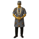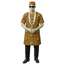 Bold red short-sleeved dashiki featuring scattered golden lion head (Isi agu) embroidery throughout. Vibrant red fabric with majestic lion motifs creating powerful cultural statement. Complete with matching red cap and layered ivory/cream beads. Paired with classic black sokoto for grounding balance. This is pure confidence and cultural pride in fabric form. The scarlet red demands attention while the golden lions symbolize courage and leadership. Perfect for the man who knows his worth. Ideal for cultural festivals, Owambe parties, celebration events, traditional weddings, cultural pride gatherings, or anywhere you want to make an unforgettable, powerful impression.