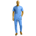 Warm golden-tan short-sleeved kaftan featuring textured diamond-pattern panel on chest. Premium fabric with subtle dimensional detail creating sophisticated depth. Functional chest pocket and clean modern lines. The honeyed gold color radiates warmth and prosperity. Includes matching sokoto. This golden tone evokes abundance, success, and positive energy. The textured panel adds tactile interest without overwhelming embroidery. Perfect for the successful professional honoring culture in contemporary style. Ideal for daytime celebrations, business-cultural events, upscale casual traditional gatherings, anniversary celebrations, or occasions radiating success and warmth.