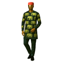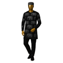 Distinctive long-sleeved senator featuring all-over golden elephant embroidery on rich fabric. Scattered elephant motifs create playful yet sophisticated pattern throughout the garment. Round neckline and flowing silhouette offer comfortable elegant styling. Paired with coordinating trousers and burgundy traditional cap for complete ensemble. Made from quality solid fabric with intricate golden threadwork creating each elephant design. The symbolic elephant imagery represents strength, wisdom, and prosperity. Rich golden embroidery against the base fabric creates luxurious texture and visual interest. Perfect for cultural celebrations, symbolic occasions, special ceremonies, fashion-forward events, or meaningful distinctive styling.