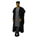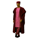Opulent flowing agbada set in rich earth tones featuring elaborate golden brocade embroidery. The voluminous outer robe showcases intricate woven paisley patterns cascading down the chest and adorning the hemline. Deep chocolate brown outer robe layers over golden brocade inner kaftan with matching embroidered trousers. Wide sleeves create dramatic movement and commanding presence. Styled with matching traditional cap for complete ceremonial presentation. Crafted from premium brocade and solid fabrics with expert embroidery throughout. The luxurious golden patterns against rich brown create regal sophistication. Perfect for chieftaincy events, high-profile weddings, royal ceremonies, distinguished celebrations, or maximum traditional grandeur.