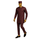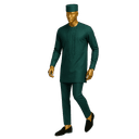 Elevate your style with this sophisticated deep forest green Kaftan ensemble featuring elegant embroidery detailing. This refined three-piece set combines traditional Nigerian craftsmanship with modern tailoring, perfect for the gentleman who appreciates rich color and timeless elegance. The outfit features a long-sleeved Kaftan top in luxurious deep green fabric, adorned with intricate tonal embroidery running vertically down the chest panel. The delicate threadwork adds texture and visual depth while maintaining a sophisticated, understated aesthetic. The round neckline and knee-length cut create a classic silhouette. Paired with matching straight-leg trousers and a coordinating green Kufi cap, this complete ensemble delivers polished, distinguished style.