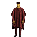 Command powerful presence with this luxurious all-black Agbada ensemble featuring raised damask patterns and dramatic flowing silhouette. This sophisticated three-piece set embodies monochromatic elegance with subtle texture, perfect for the distinguished gentleman who appreciates refined luxury and timeless black-on-black sophistication. This striking outfit showcases a short-sleeved Agbada in premium black fabric with an elaborate raised damask pattern woven throughout, featuring concentric circles and geometric designs that create depth and visual interest through texture rather than color contrast. The traditional wide-sleeve design creates impressive, commanding presence. The all-black aesthetic with textured patterns represents the height of sophisticated restraint and modern elegance. Complete with matching black trousers and a coordinating black Kufi cap, this complete three-piece ensemble delivers powerful style for black-tie weddings, formal evening ceremonies, upscale cultural events, memorial services, and occasions requiring dignified, authoritative presence. The raised damask catches light beautifully, creating subtle shimmer that elevates the monochromatic palette. Custom-tailored to your exact measurements for impeccable fit.