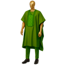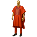 Experience timeless elegance with our Royal Amber Agbada ensemble, a masterfully crafted three-piece traditional outfit that embodies Nigerian heritage and sophistication. This stunning set features a flowing agbada (outer robe) in rich amber-gold fabric, adorned with intricate geometric embroidery on the chest panel that showcases traditional craftsmanship. The ensemble includes matching fitted trousers and an inner top, all expertly tailored for comfort and style. Perfect for weddings, cultural ceremonies, special occasions, or making a bold statement at any formal event. The vibrant amber hue symbolizes wealth and royalty, while the loose, flowing silhouette ensures comfort throughout your celebration. Each piece is custom-made to your measurements, ensuring a perfect fit that honors both tradition and contemporary style.