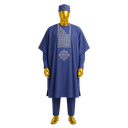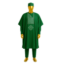 Experience the grandeur of traditional Nigerian nobility with this majestic teal Agbada featuring intricate white geometric embroidery. The flowing wide-sleeve design and matching cap create a commanding presence at any celebration. This ensemble captures the essence of owambe elegance—where culture, celebration, and style converge. Ideal for weddings, naming ceremonies, and any event where making a statement is non-negotiable.