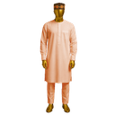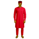 Embrace pure sophistication with this elegant off-white Kaftan ensemble that embodies clean lines and timeless style. This refined three-piece set represents minimalist perfection in traditional Nigerian menswear, designed for the gentleman who appreciates understated elegance and versatility. The outfit features a long-sleeved Kaftan top in soft off-white fabric with a clean, unadorned design that lets the quality of the fabric and tailoring speak for itself. The round neckline with subtle front slit and functional chest pocket maintain traditional sensibility while the streamlined silhouette offers contemporary appeal. Paired with matching straight-leg trousers and completed with an ornate embroidered Kufi cap featuring intricate geometric patterns, this ensemble balances simplicity with cultural artistry.
