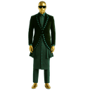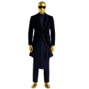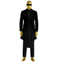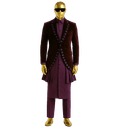 Break fashion boundaries with this striking avant-garde ensemble that fuses contemporary tailoring with traditional Nigerian style. This bold three-piece set features a dramatic structured jacket over a long Kaftan, designed for the fearless gentleman who sets trends rather than follows them. The outfit showcases a fitted black jacket with unique eyelet and grommet detailing running symmetrically down the front panels, creating an edgy, fashion-forward aesthetic. The structured shoulders and tailored waist create a powerful silhouette. Underneath, a long burgundy/brown Kaftan with full-length button placket adds traditional flow and movement. Paired with matching trousers, this complete ensemble delivers high-fashion impact with cultural roots.