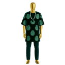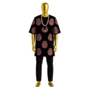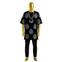 Make an unforgettable entrance in this bold black ensemble featuring oversized golden medallion appliqués that represent ancestral heritage and royal lineage. The short-sleeved tunic creates a dramatic silhouette that commands respect and admiration. This is more than clothing—it's a conversation piece that celebrates Nigerian cultural identity with contemporary confidence. Perfect for festivals, milestone birthdays, and cultural exhibitions.