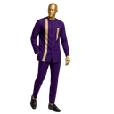 Step into contemporary elegance with this striking forest green Senator suit featuring sophisticated gold contrast panels. This modern two-piece set bridges traditional Nigerian styling with fashion-forward design, perfect for the gentleman who appreciates bold color combinations and distinctive details. This sharp ensemble showcases a long-sleeved Senator top in rich forest green fabric, elevated by eye-catching gold vertical panels running down the front on both sides of the placket. The contrasting gold trim creates a sleek, elongating effect while adding luxurious visual interest. A matching gold chest pocket detail completes the refined aesthetic. The round neckline and structured fit offer contemporary tailoring that flatters the physique. Paired with matching forest green straight-leg trousers, this two-piece suit delivers sophisticated style for weddings, cultural celebrations, upscale social events, fashion-forward gatherings, and occasions where you want to make a memorable impression. The rich green symbolizes growth and prosperity while the gold accents add a touch of opulence. Custom-tailored to your exact measurements for impeccable fit.