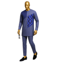 Break style boundaries with this contemporary denim blue Senator ensemble featuring bold color blocking and striking geometric embroidery. This fashion-forward two-piece set fuses traditional Nigerian tailoring with modern design aesthetics, perfect for the trendsetting gentleman who embraces innovation and artistic expression.This unique outfit showcases a long-sleeved Senator top in soft denim blue fabric, elevated by dramatic color blocking with burgundy and rust-orange panels across the chest and shoulder. The rust-orange section features eye-catching geometric diamond embroidery that adds texture and cultural authenticity to the contemporary design. The asymmetric color placement creates dynamic visual interest and modern edge. Paired with matching denim blue straight-leg trousers, this two-piece ensemble delivers bold style for fashion-forward weddings, contemporary cultural events, creative industry gatherings, artistic celebrations, and occasions where you want to make a distinctive statement. Custom-tailored to your exact measurements for impeccable fit and comfort.